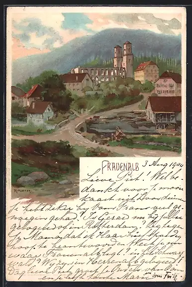 Künstler-AK K. Mutter: Frauenalb, Strassenpartie am Ortsrand