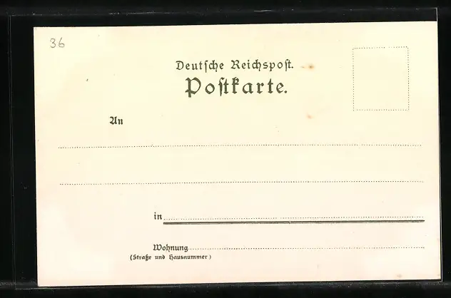 Personenbezogene Daten auf der Rückseite der Karte wurden durch blauen Textmarker unkenntlich gemacht. Die blauen Stellen sind auf die Vorderseite durchgeweicht und wirken sich negativ auf das Postkartenfoto aus