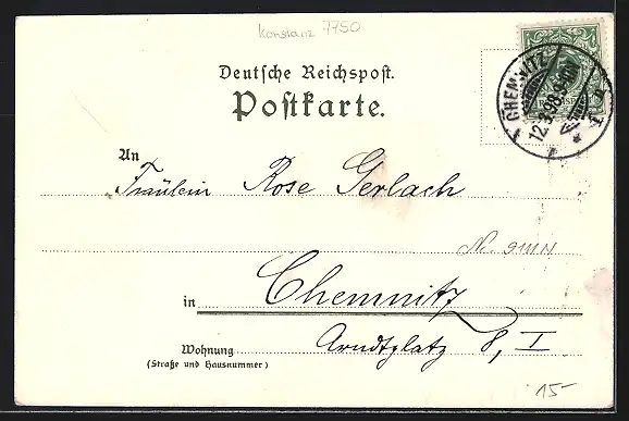 alte Ansichtskarte, gelaufen 1898, Stempelspur, guter Zustand