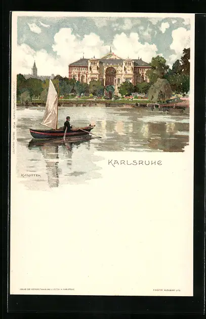 Künstler-AK K. Mutter: Karlsruhe, Bootspartie