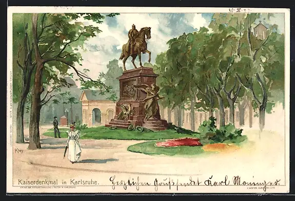 Künstler-AK K. Mutter: Karlsruhe, Kaiserdenkmal