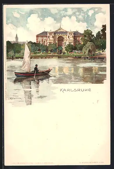 Künstler-AK K. Mutter: Karlsruhe, Mann im Ruderboot