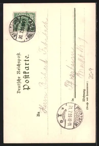 alte Ansichtskarte, gelaufen 1899, guter Zustand