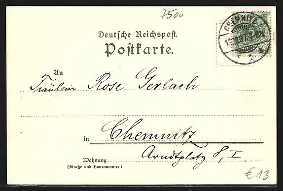 alte Ansichtskarte, gelaufen 1897, guter Zustand