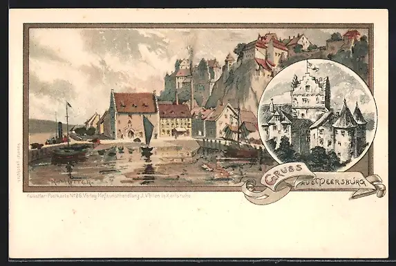 Künstler-AK K. Mutter: Meersburg, Ortsansicht und Schloss