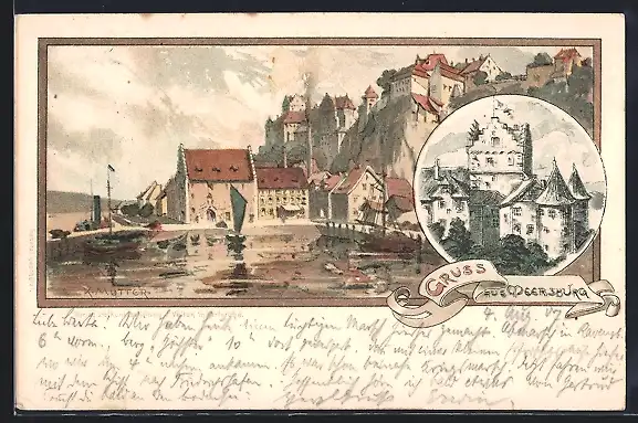 Künstler-AK K. Mutter: Meersburg, Schiffe auf dem Wasser mit Blick zum Ort