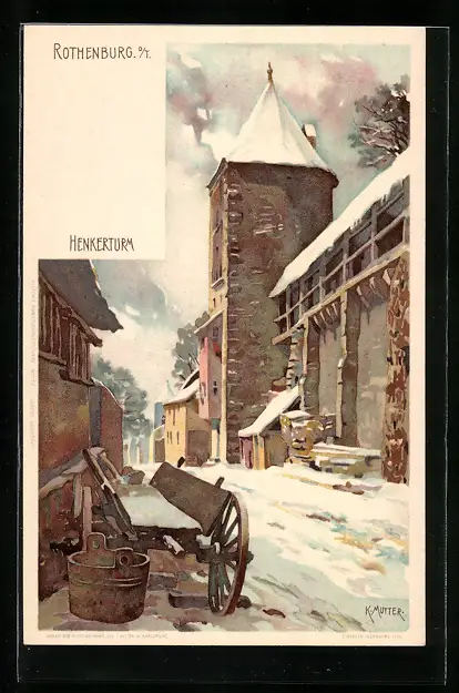 Künstler-AK K. Mutter: Rothenburg, Winterzeit am Henkerturm