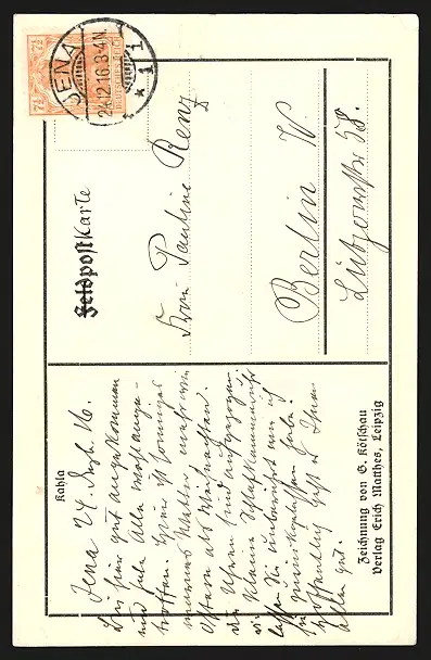 gelaufen 1916, Eckknicke re. unten u. li., guter Zustand