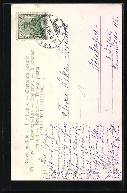 alte Ansichtskarte, gelaufen 1908, Abriebspur oben re., guter Zustand