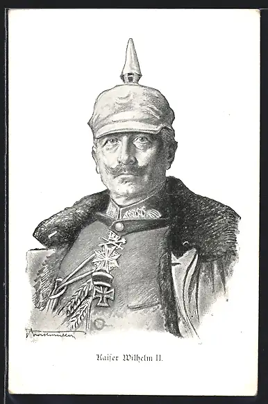 Künstler-AK Kaiser Wilhelm II. in Uniform mit Pickelhaube