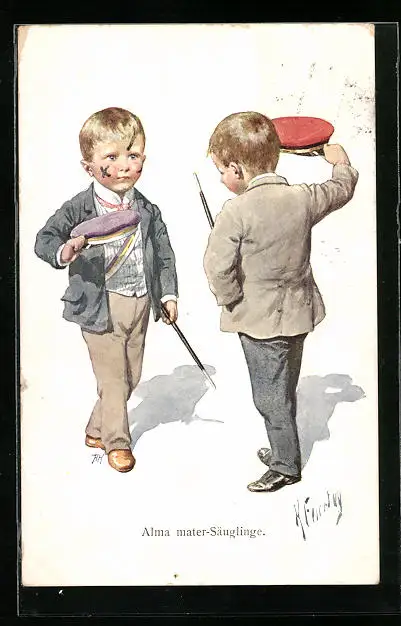 Künstler-AK Karl Feiertag: Alma mater-Säuglinge