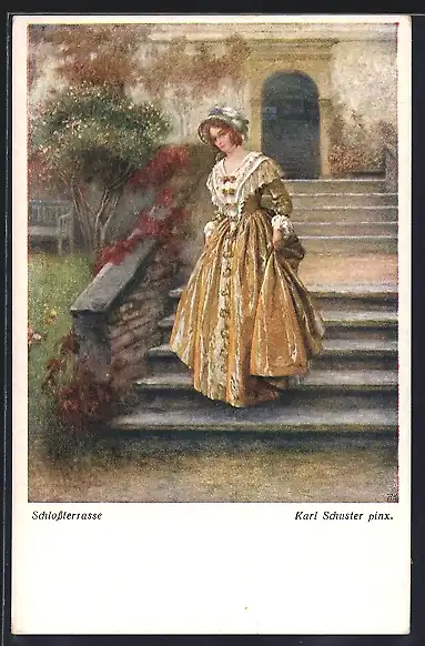 Künstler-AK Karl Maria Schuster: Fräulein an der Schlossterrasse
