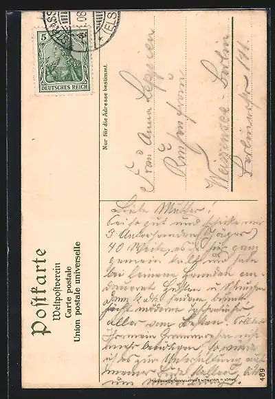 alte Ansichtskarte, gelaufen 1908, guter Zustand