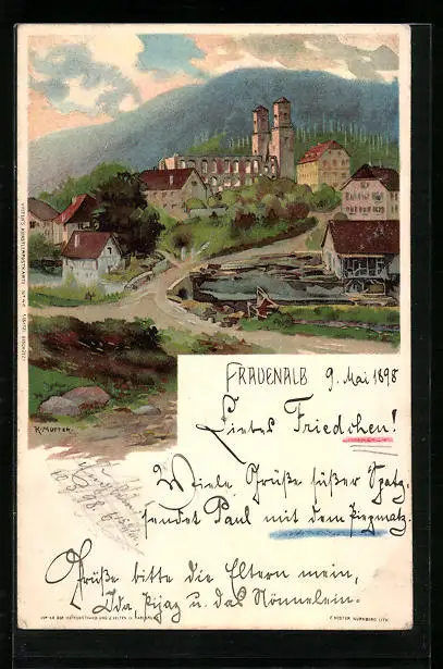 Künstler-AK Karl Mutter: Frauenlab, Teilansicht mit Kirche
