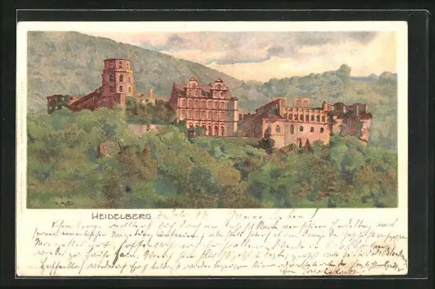 Künstler-AK Karl Mutter: Heidelberg, Schloss-Panorama