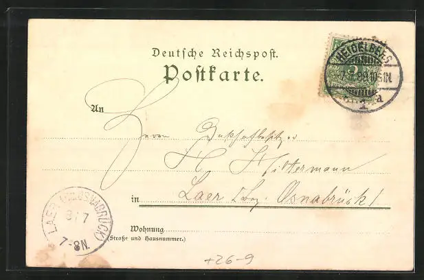 alte Ansichtskarte, gelaufen 1899, Albumspuren, sonst guter Zustand