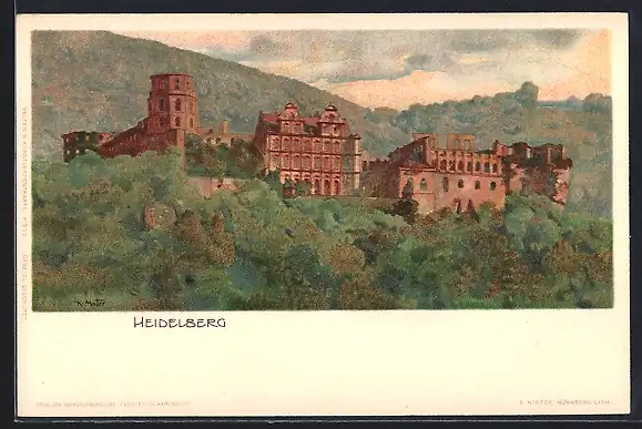 Künstler-AK Karl Mutter: Heidelberg, Schloss-Panorama