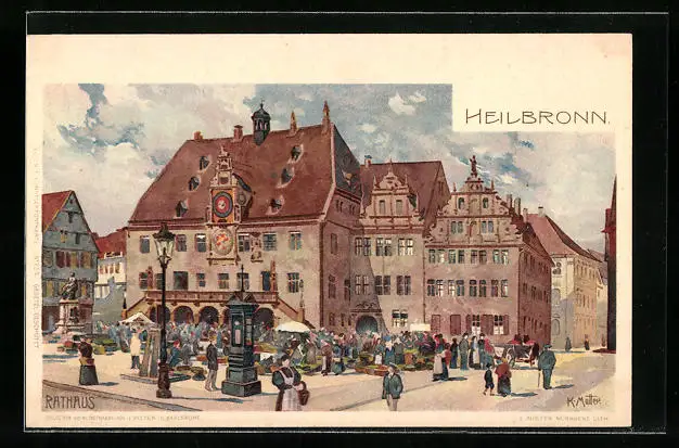 Künstler-AK Karl Mutter: Heilbronn, Motiv mit dem Rathaus