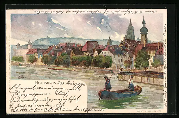 Künstler-AK Karl Mutter: Heilbronn, Stadtansicht vom Neckarufer aus