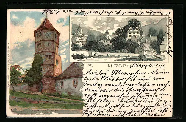 Künstler-AK Karl Mutter: Hirsau, Gesamtansicht mit Rathausturm