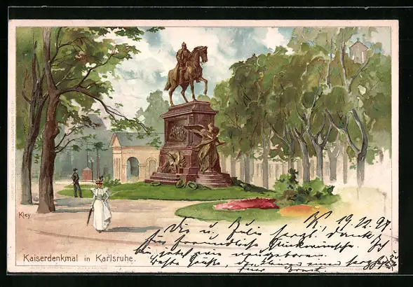 Künstler-AK Karl Mutter: Karlsruhe, Kaiserdenkmal im Park