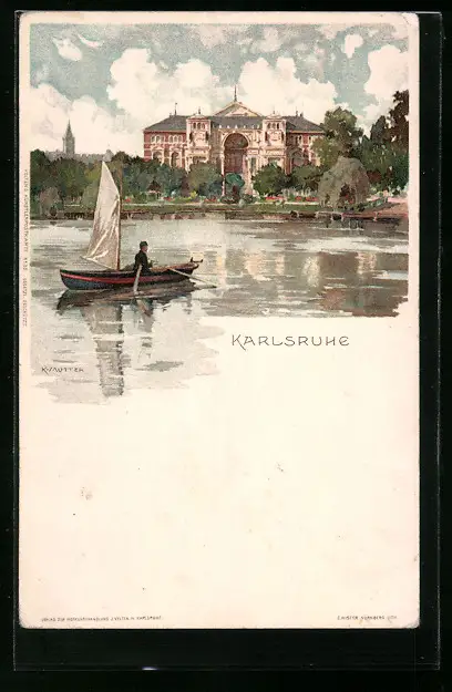 Künstler-AK Karl Mutter: Karlsruhe, Schloss mit Bootspartie