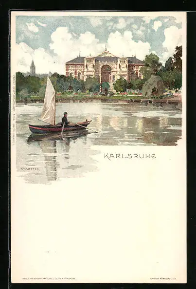Künstler-AK Karl Mutter: Karlsruhe, Seepartie mit Schloss