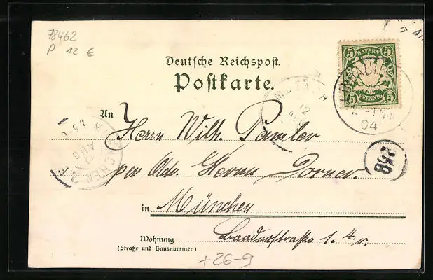 alte Ansichtskarte, gelaufen 1904, Stempelspur, Albumspuren, sonst guter Zustand