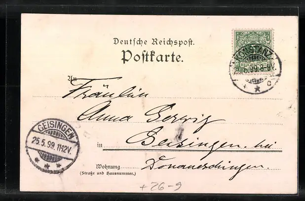 alte Ansichtskarte, gelaufen 1899, guter Zustand