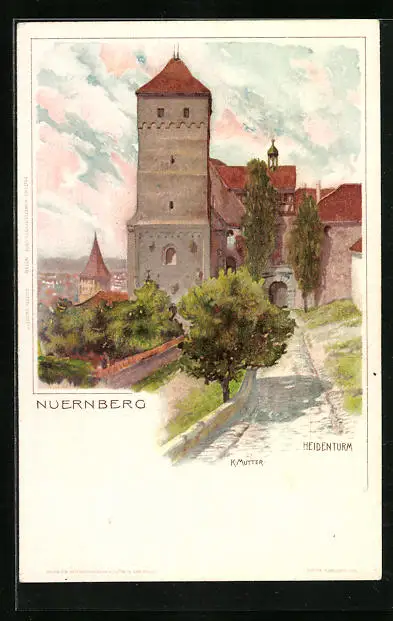 Künstler-AK Karl Mutter: Nürnberg, Am Heidenturm