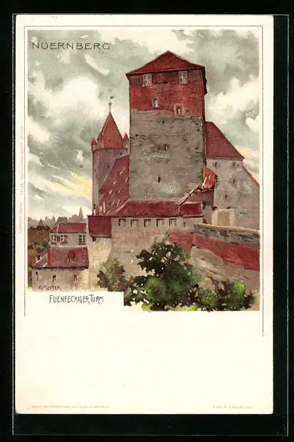 Künstler-AK Karl Mutter: Nürnberg, Fünfeckiger Turm im Stadtbild