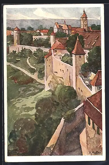 Künstler-AK Karl Mutter: Rothenburg o/T, Stadtmauer