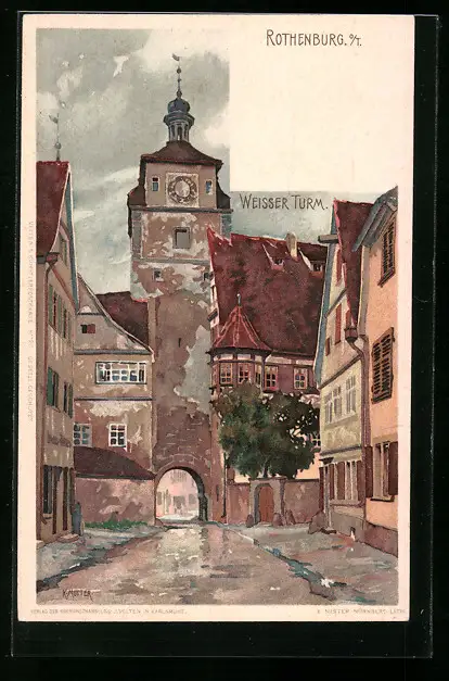 Künstler-AK Karl Mutter: Rothenburg o. T., Weisser Turm