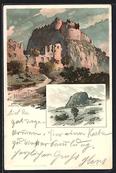 Künstler-AK Karl Mutter: Singen, Ruine der Burg Hohentwiel