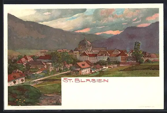 Künstler-AK Karl Mutter: St. Blasien, Panoramablick auf die Ortschaft