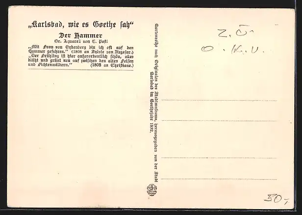 Künstler-AK Karlsbad, Der Hammer zur Zeit Goethe`s