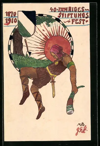 Künstler-AK Karlsruhe, 40 Jähriges Stiftungsfest, 1910