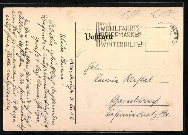 alte Ansichtskarte, gelaufen, Briefmarke entfernt, guter Zustand