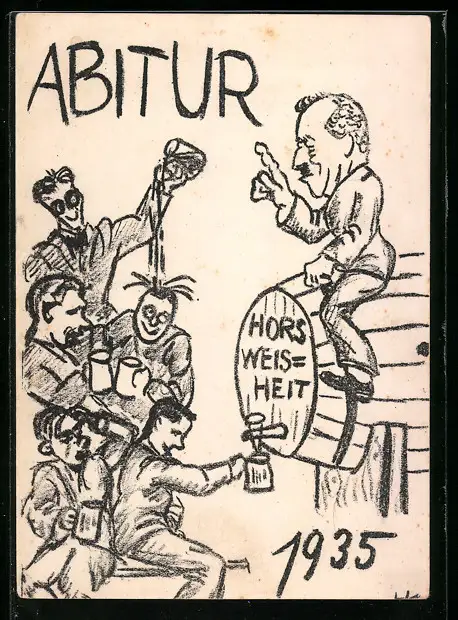 Künstler-AK Karlsruhe, Abitur 1935, Feiernde Studenten