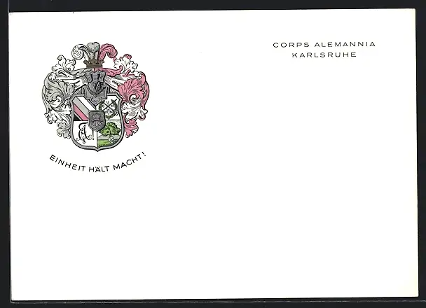 Künstler-AK Karlsruhe, Corps Alemannia, Ritterhelm mit Studentenwappen