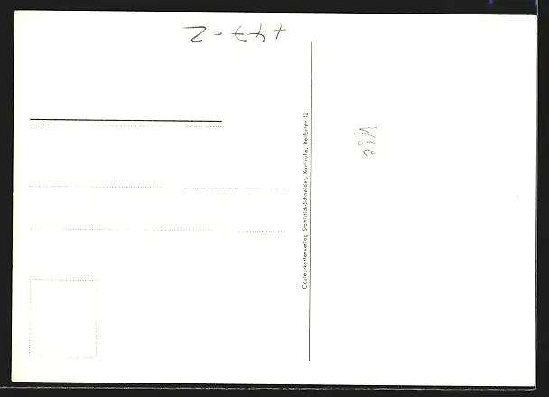 Personenbezogene Daten auf der Rückseite der Karte wurden durch blauen Textmarker unkenntlich gemacht. Die blauen Stellen sind auf die Vorderseite durchgeweicht und wirken sich negativ auf das Postkartenfoto aus