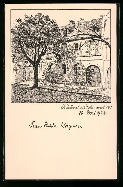 Künstler-AK Karlsruhe, Gebäude Stefanienstrasse 20