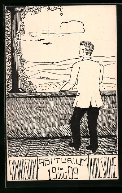 Künstler-AK Karlsruhe, Gymnasium, Abiturium 1909