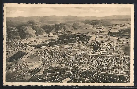 Künstler-AK Karlsruhe, Karlsruhe und Umgebung, Schematische Ansicht