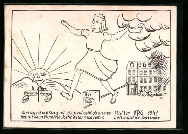 Künstler-AK Karlsruhe, Lessingschule, Abitur 8 RG 1941