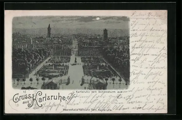 Künstler-AK Karlsruhe, Ortsansicht vom Schlossturm aus