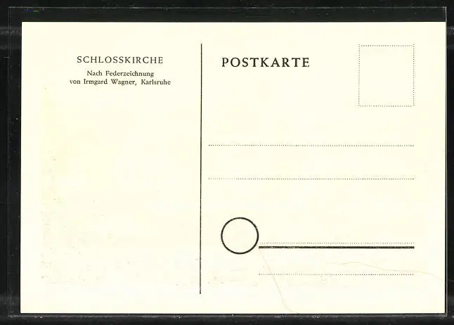 Künstler-AK Karlsruhe, Schlosskirche, Zeichnung von Irmgard Wagner