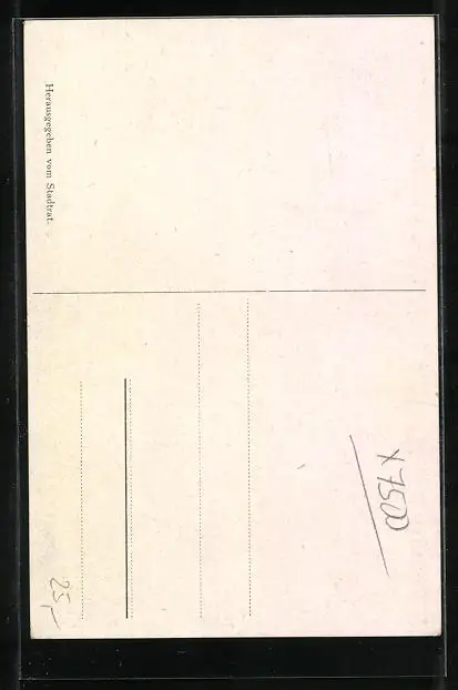 Personenbezogene Daten auf der Rückseite der Karte wurden durch blauen Textmarker unkenntlich gemacht. Die blauen Stellen sind auf die Vorderseite durchgeweicht und wirken sich negativ auf das Postkartenfoto aus