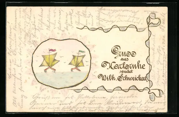 Künstler-AK Karlsruhe, Segelboote auf See