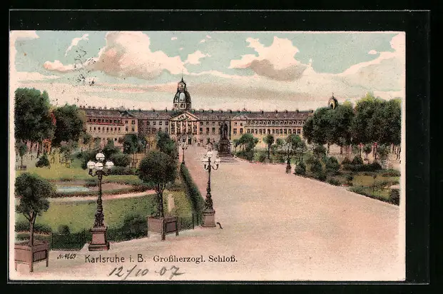 Künstler-AK Karlsruhe i. B., Grossherzogl. Schloss